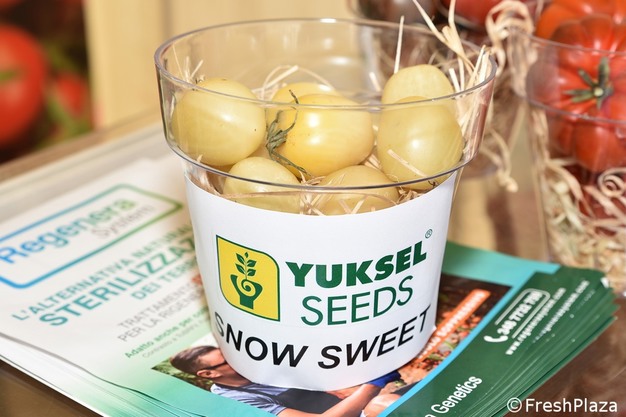 © Giancarlo Fabbri | HortiDaily.esLa amplia gama de variedades de Yuksel Seeds también incluye este tomate blanco inusual y muy especial.
