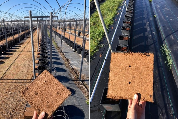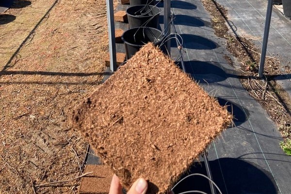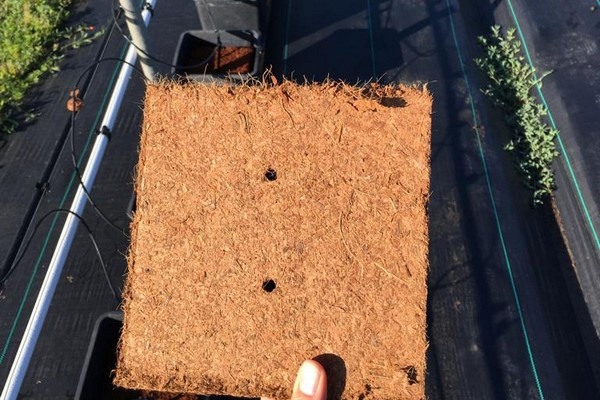Bloque de fibra de coco para el cultivo de moras.