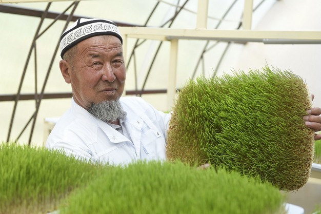 © UNDP in the Kyrgyz RepublicEl forraje hidropónico es nutritivo y crece en solo 7–8 días.