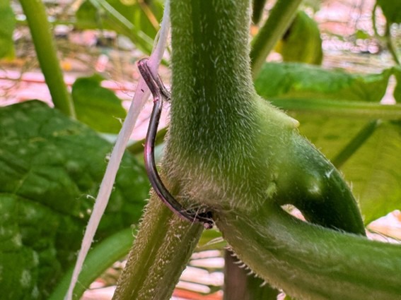 Otro gran foco de residuos plásticos en horticultura lo encontramos en el soporte de racimos. Para ello, Hortiware desarrolló hace años una solución alternativa: CROP CURV, un soporte metálico diseñado para el cultivo de tomates. "Combinado con hilo biodegradable y anillas metálicas, el residuo vegetal generado es 100% libre de plástico y completamente compostable. La historia comenzó con las anillas... y se cierra ahora con el CROP CURV", afirma Dirk-Jan.
