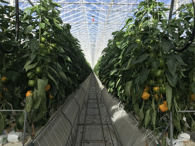 - 32 acres de invernaderos semicerrados diseñados para tomates, pimientos y otros cultivos de vid.
