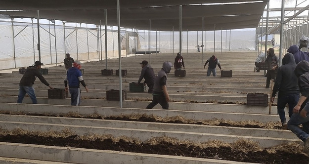 © Aldea VerdeMomento de la siembra inicial de lombrices en un nuevo proyecto de lombricompostaje industrial en Baja California, México