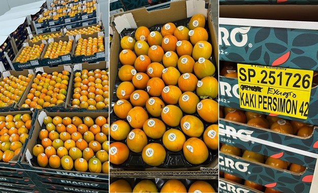 Por otro lado, 4Fruit Company también ha empezado a recibir los primeros kakis de Anecoop bajo la marca Bouquet. "No esperábamos recibirlos hasta dentro de una semana, pero han llegado antes. Son kakis Rojo Brillante, por lo tanto, de una buena variedad. Casi todos son todavía de calibres pequeños (42-45) y todo el mundo espera la llegada de los más grandes (35-38), pero todavía no están disponibles. Los precios rondan los 23,50 euros por 7,50 kilos".