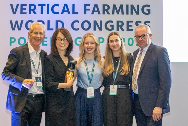 Richard Hall (primero por la izquierda) en el Congreso Mundial de Agricultura Vertical 2024 en Fráncfort (Alemania).