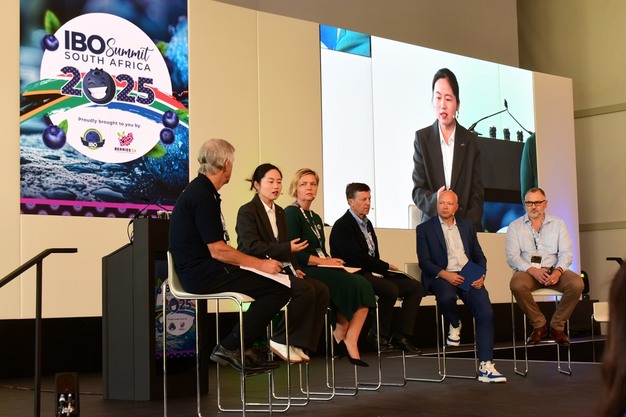 © Carolize Jansen | HortiDaily.esMesa redonda sobre la producción mundial, dirigida por Stephen Taylor, con Amelie LIu (Joy Wing Mau), Dominika Kozarzewska (Polskie Jagody), Kasey Cronquist (US Highbush Blueberry Council), Andres Armstrong (Chilean Blueberry Council) y George Jesset (Costa).
