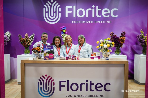 El equipo Floritec con sus crisantemos y santinis © Mirthe Walpot | HortiDaily.es