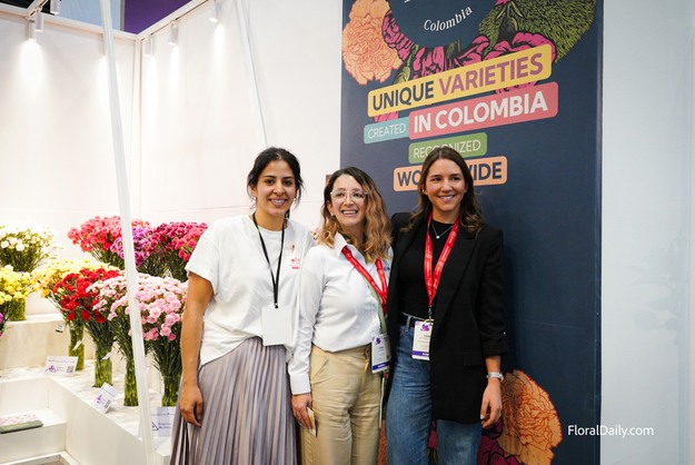 Aunque la jornada del jueves comenzó con cierta calma, pronto los pasillos del recinto ferial se llenaron de visitantes. Como bien es sabido, Colombia es sinónimo de rosas de gran tamaño, pero el país también destaca por su amplia oferta en claveles (Dianthus). En el stand de Breiercross, Daniela Botero Trujillo presentó la iniciativa Dianthus Land Colombia, una colaboración entre nueve obtentores colombianos de claveles que buscan impulsar el reconocimiento de esta flor en el mercado estadounidense, destacando su diversidad cromática y varietal. Como explicó Daniela: "El clavel suele asociarse a los colores rojo, blanco y amarillo, pero hay tonalidades verdaderamente espectaculares que merecen ser conocidas en todo el mundo".