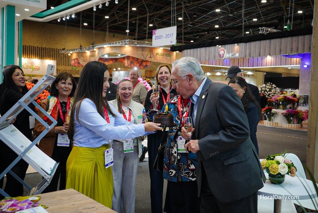 © Mirthe Walpot | HortiDaily.es Augusto Solano, de Asocolflores, celebró su cumpleaños y sopló una vela.