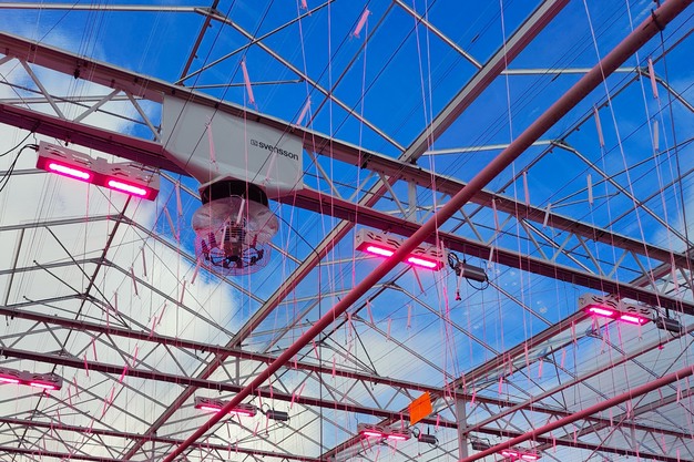 Dominique Blok, de Svensson, explica que normalmente los ventiladores se conectan a un cable de control y se definen por hardware para un grupo climático específico. Sin embargo, al conectar los ventiladores y los surtidores al mismo sistema inalámbrico que la tecnología de control de la iluminación, la misma flexibilidad que conocemos de la instalación de iluminación pasa a estar disponible para el control de la ventilación. La idea fue presentada por primera vez por John van Dijk, asesor de Looije Agro Technics, y los equipos decidieron lanzarse a por ella.