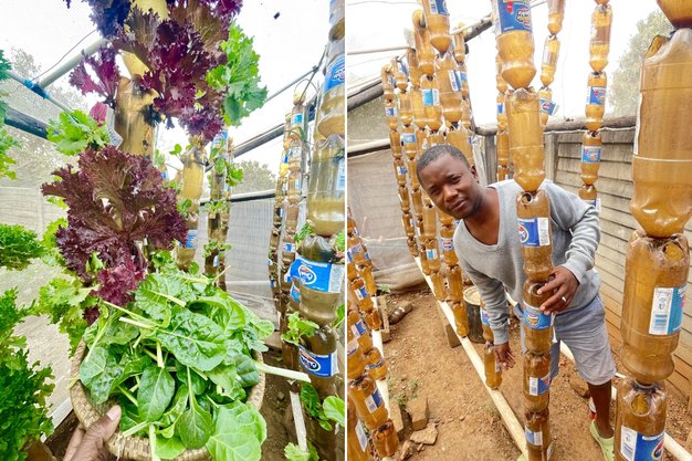 Para Vundla, cada torre representa botellas retiradas del flujo de residuos de la ciudad y convertidas en un sistema de cultivo, prueba de que la agricultura vertical puede hacerse asequible en lugares donde los sistemas de alta tecnología están fuera de nuestro alcance.