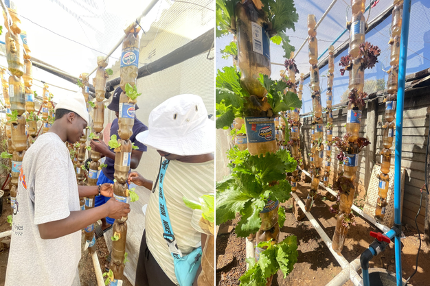 Zambezi Eco Sprouts intenta hacer frente a estas crisis con una única innovación: transformar las botellas desechadas en infraestructuras de cultivo vertical.© Zambezi Eco Sprouts