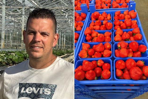 © Swinkels ZachtfruitMarc junto a las fresas de alta calidad con las que sus clientes estaban tan contentos.