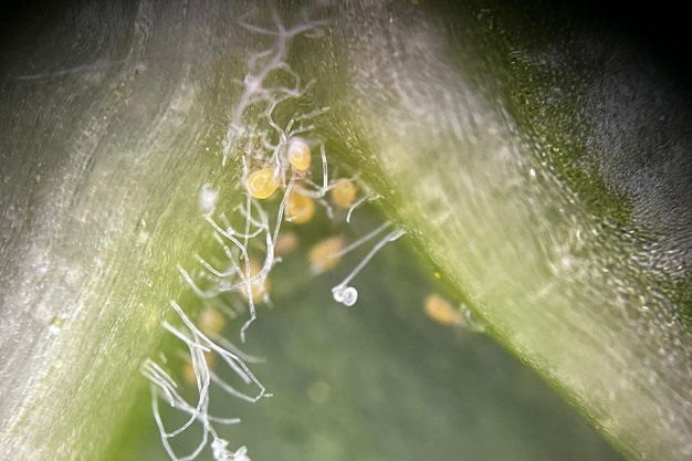"Por eso desde Biomip hemos desarrollado una estrategia de sueltas de Amblyseius swirskii y Amblyseius andersoni, efectivos contra las puestas y las larvas del parvispinus, y sueltas de Orius laevigatus y Chrysoperla carnea (crisopa), que actúan contra las ninfas y los adultos; en concreto la crisopa es un insecto muy polivalente, capaz de actuar en diferentes hábitats, incluido el fruto, y destaca por ser un depredador que busca presas activamente".