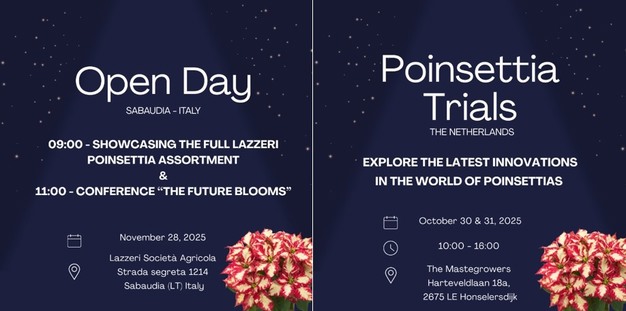 A medida que se acerca la temporada de la flor de pascua, Lazzeri Società Agricola se complace en invitarle a dos eventos -uno en Italia y otro en los Países Bajos- en los que profesionales, productores y expertos del sector se reunirán para explorar el futuro de la flor de pascua.© Lazzeri Genetica s.a.s.