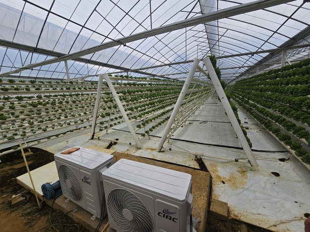 © Pieter Boekhout | HortiDaily.esEn el nuevo invernadero, el sistema de pirámides será reemplazado por canaletas de cultivo; en primer plano los enfriadores de agua.