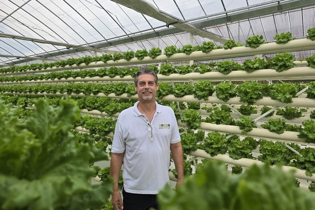 Este antiguo experto en automatización oriundo de Flandes se ha convertido en agricultor a tiempo completo, recorriendo a diario los invernaderos de plástico de Intergreens, su finca en Surinam. Allí cultiva lechugas en estructuras en forma de pirámide y tomates en macetas. Sus días giran en torno a la producción, el control biológico, los clientes, el clima y el cultivo hidropónico.