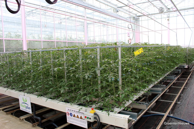 Las tomateras de este concepto especial, en el que Ridder lleva trabajando varios años en colaboración con varios socios, se cultivan en el sistema de canaletas móviles de Hortiplan. Antes se utilizaban canaletas pensadas para el cultivo de lechugas.