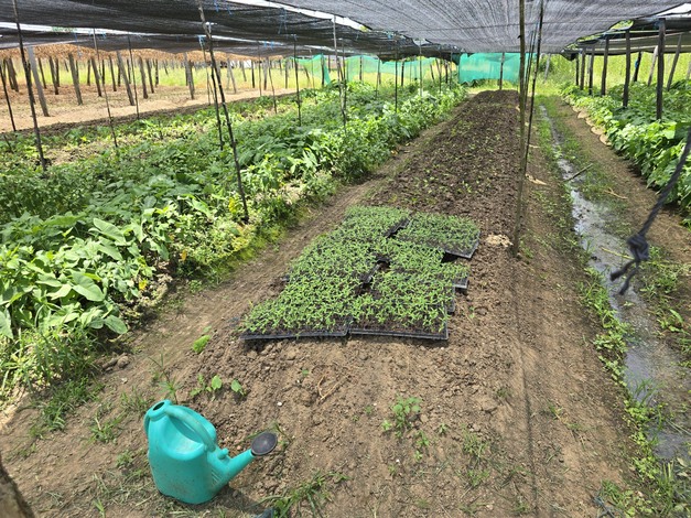 Bajo el calor sofocante de Paramaribo, el agricultor Jaswant —miembro de la cooperativa agrícola Kwatta— trabaja sin descanso en su terreno de una hectárea y media. "Gracias a un sistema bien pensado de rotación de cultivos, siempre hay algo floreciendo o creciendo", dice con orgullo mientras señala sus hileras de melón amargo, amsoi, hojas de tayer y agumawiwiri. "Incluso durante la temporada de lluvias puedo seguir abasteciendo. Así garantizo ingresos durante todo el año."