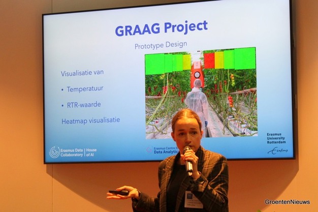 © Thijmen Tiersma | HortiDaily.esMarie Kegeleers, del Centro Erasmus de Análisis de Datos, ofrece una introducción sobre tecnología inmersiva y habla de su aplicación en horticultura en el marco del proyecto GRAAG.