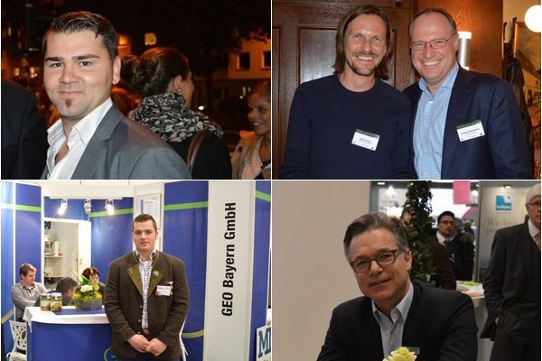 En el sentido de las agujas del reloj: Artur Lammert de PLUG Verpackungs-GmbH (ahora Dreesen Kräuter), el comerciante de exóticos Ingmar Heuer con Andreas Allenspach (entonces Coop Schweiz), el pater familias Mike Port de Port International, y un jovencísimo Josef Hofmeister de GEO Bayern.