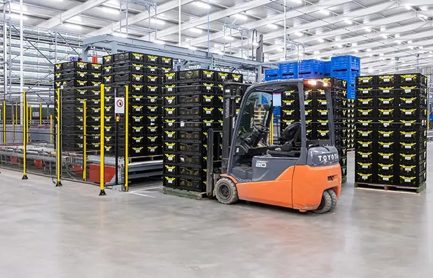 ...y después la carretilla elevadora los lleva al almacén frigorífico