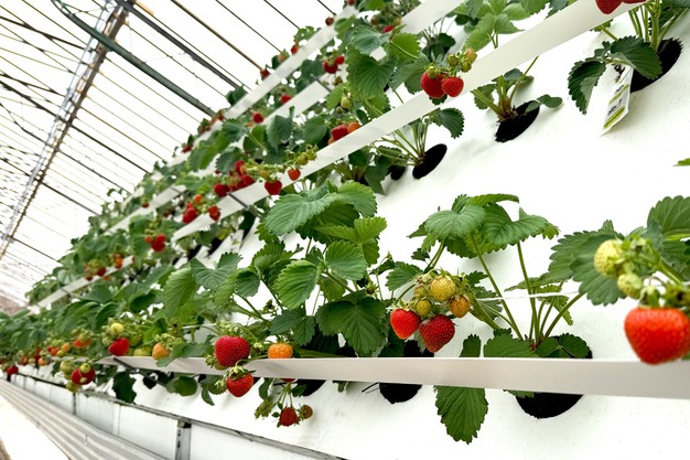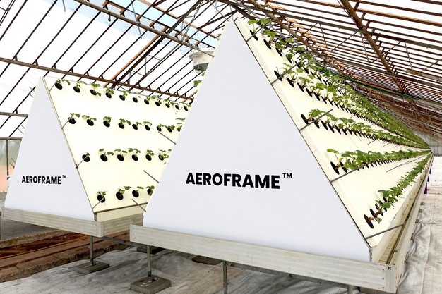 El diseño físico del Aeroframe es una estructura triangular en forma de A que crea dos metros cuadrados de cubierta por cada metro cuadrado de invernadero. Es a la vez modular y móvil, lo que permite a los productores adaptar la infraestructura existente o diseñar nuevos diseños con una gran eficiencia de espacio. El sistema está optimizado para cultivos compactos de alto valor, como fresas, verduras de hoja verde y hierbas aromáticas, y elimina la necesidad de utilizar sustratos de un solo uso, como turba, fibra de coco o lana de roca.