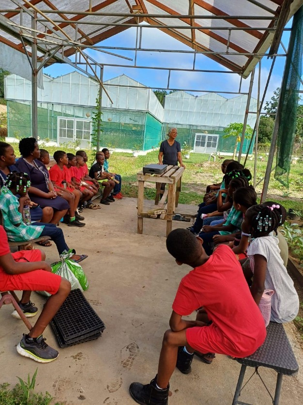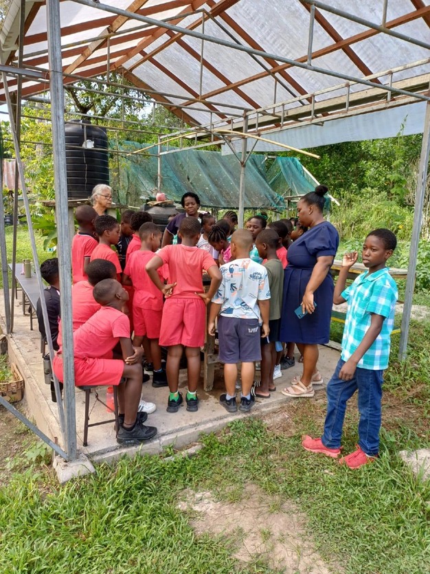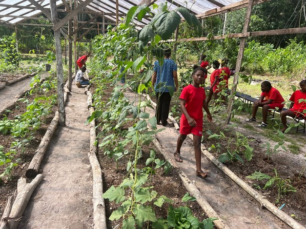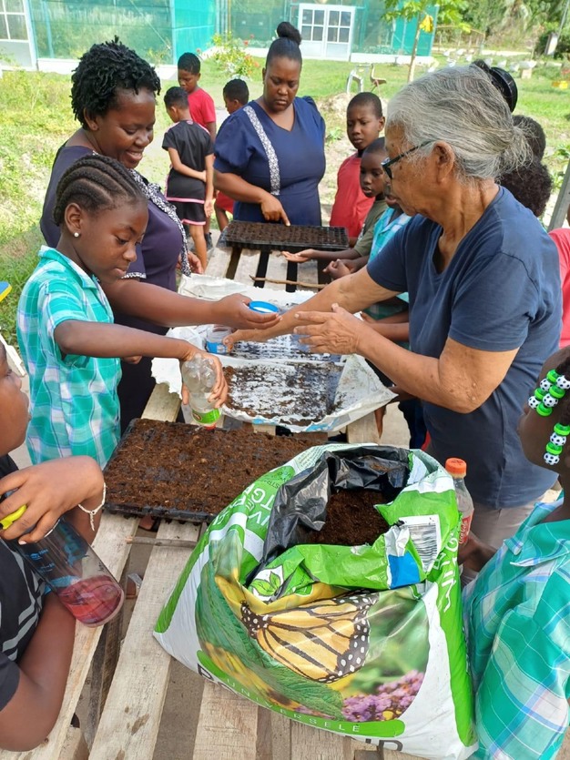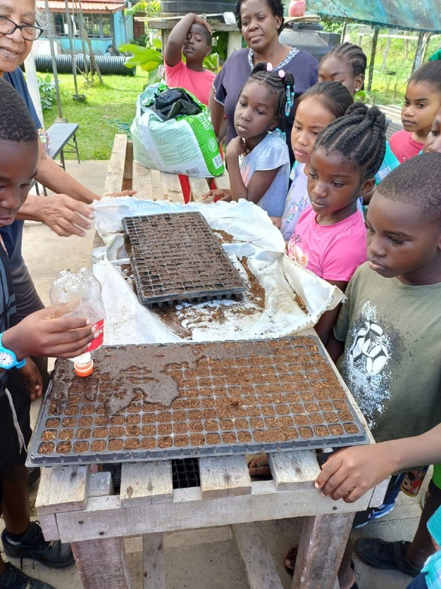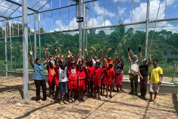 "Cuando compré el solar, estaba completamente cubierto de maleza", recuerda Nesta Tjong A Hung mientras se limpia las manos en el peto. Nesta, antigua trabajadora pastoral que ahora tiene 75 años, construyó un refugio seguro para niños hace 25 años con sus ahorros: Mariahoeve. Lo que empezó como un modesto hogar se convirtió en un centro donde no solo abundan el amor y los cuidados, sino también las verduras. Nesta cree que cada niño debería comer 10 cucharadas de verduras al día. Las verduras en Surinam son caras y este era el mayor coste de mantener a los niños. Por eso, Nesta y su marido John decidieron cultivar sus propias verduras.