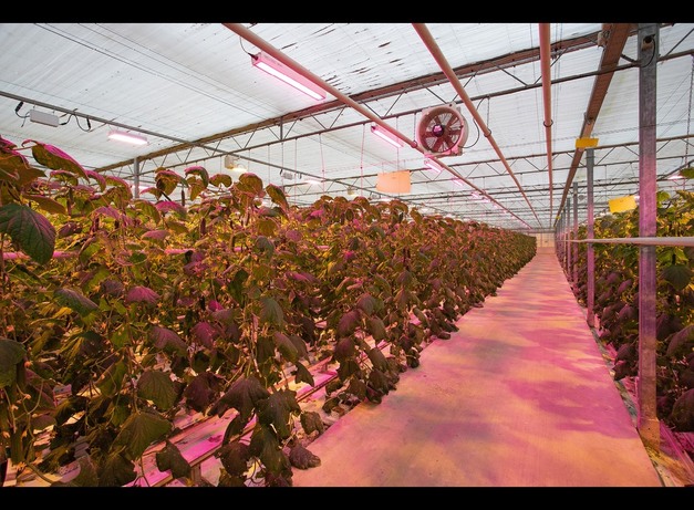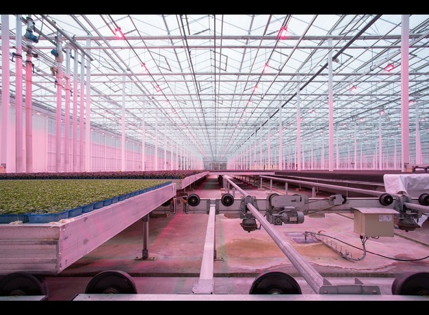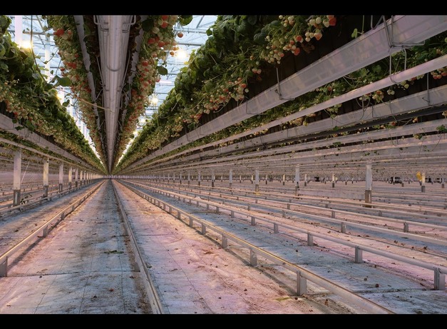 "Lo que más me sorprende es que en el invernadero falten tantas cosas -como el suelo y las relaciones microbianas- y que, a pesar de ello, las plantas consigan crecer y florecer. Esto dice mucho del complejo ingenio evolutivo de estos sistemas vivos y de su capacidad de adaptación. Pero además, desde el momento en que las semillas se despiertan en el invernadero, las plantas son en cierto sentido formas de vida programables, en las que determinadas frecuencias de luz inician un crecimiento específico y una receta a medida de nutrientes, calor y agua provoca una uniformidad casi absoluta de las plantas en su aspecto, altura, ritmo de crecimiento y color. Es bastante surrealista ver un paisaje tan extenso de organismos casi idénticos en estas enormes estructuras".
