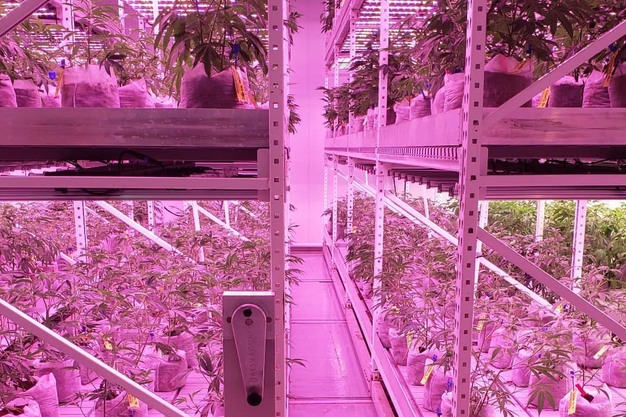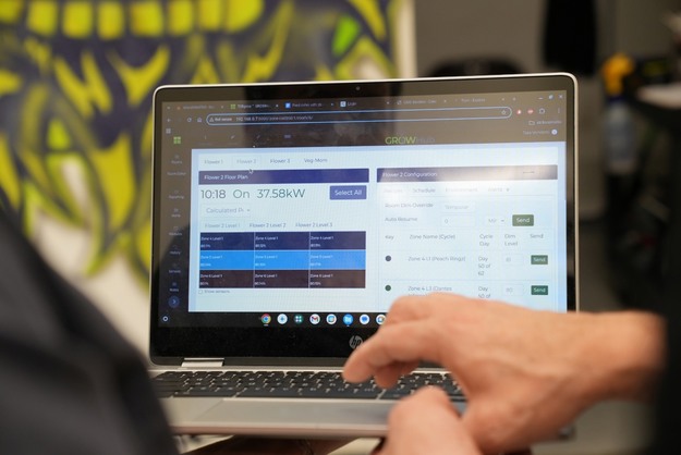 Su sistema de control, el GrowHub, permite a los productores asignar una "receta" de iluminación a un cultivo específico. "Puedes cargar una variedad, pulsar un botón y las luces se atenúan o cambian de espectro en consecuencia", dice Zachary. Bountiful Farms utiliza más de mil luces en unos 6.000 metros cuadrados de superficie. Cada sala funciona con parámetros específicos para cada cepa. "Desde el punto de vista del cultivo, esto cambia las reglas del juego. Puedes analizar los datos, ver cuántos kilovatios se destinaron a un cultivo específico y planificar tanto financiera como agrícolamente".