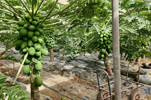 "La papaya se adapta bastante bien a los invernaderos de raspa y amagado típicos de esta zona, pero hay que buscar la variedad correcta y tener en cuenta la fecha de siembra; eso es importantísimo", explica, "ya que a diferencia de otros cultivos subtropicales, la papaya tolera el calor ambiental, pero su cuajado floral es muy sensible a las altas temperaturas. Por eso la ventilación es clave, al igual que unos niveles altos de humedad", añade.
