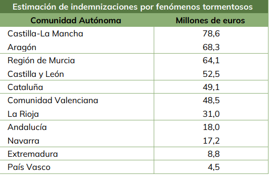 Sumando el resto de los riesgos cubiertos por el seguro agrario, la estimación de
