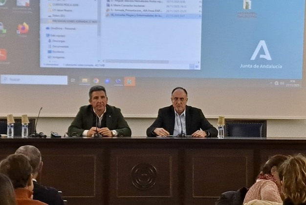 En concreto, la jornada técnica en Huelva ha contado con seis ponencias de investigadores y técnicos especialistas de los centros Ifapa Las Torres (Sevilla), Alameda del Obispo (Córdoba) y Málaga para analizar diferentes aspectos que han marcado la campaña 24/25 en torno a plagas y enfermedades en frutos rojos.