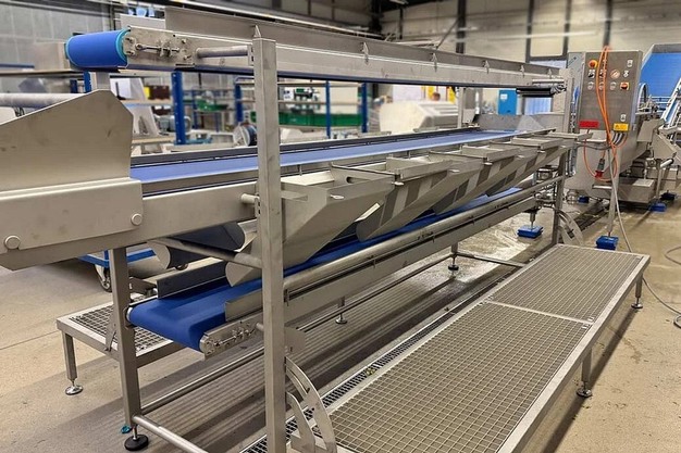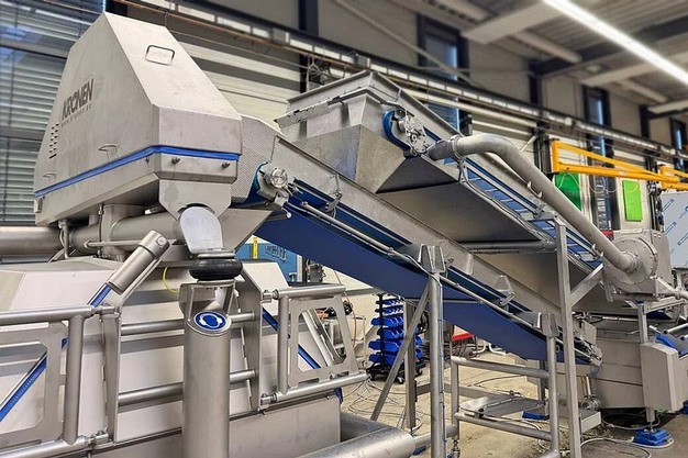 La instalación incluye una mesa de corte para seis personas modificada para adaptarse a las condiciones del suelo y permitir una transferencia eficaz de la materia prima a una cortadora existente. Una cinta de pesaje ya instalada se transformó en un transportador inclinado, mientras que se añadió una cinta de transporte adicional para el funcionamiento continuo. La empresa también integró una lavadora Kronen GEWA 4000 V existente, que se adaptó a la nueva configuración de control.