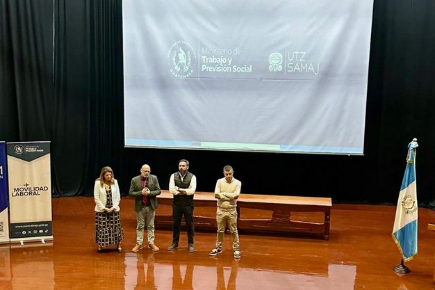 Durante su estancia en Guatemala, la delegación de Freshuelva visitó las instalaciones del Ministerio de Trabajo y Previsión Social (MINTRAB) y mantuvo reuniones técnicas para conocer el informe de seguimiento de las personas trabajadoras que participaron en la campaña 2024-2025, con el objetivo de continuar mejorando el procedimiento y reforzar las garantías del programa de migración circular. En este contexto, se celebró un encuentro institucional con la ministra de Trabajo de Guatemala, Miriam Roquel Chávez, y la viceministra Claudia Peneleu, en el que también participó María José Jarquín Ramos, representante del Banco Interamericano de Desarrollo (BID) en Guatemala.