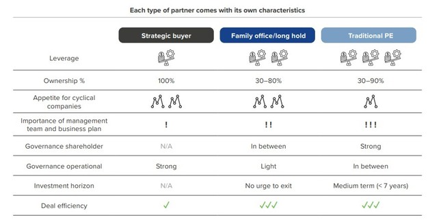 Las empresas de PE existen en muchas variedades y difieren principalmente entre sí en términos de estrategia y horizonte de inversión. Algunas prefieren invertir en empresas con grandes oportunidades de crecimiento, mientras que otras se centran en flujos de caja estables o en empresas con problemas financieros que necesitan un cambio de rumbo. Algunas empresas de capital privado adoptan un enfoque más práctico, implicándose de cerca en las operaciones cotidianas de las empresas de su cartera. Otras se desentienden más, dando libertad a los equipos directivos para dirigir el negocio de forma independiente. La gran mayoría adopta este último enfoque.