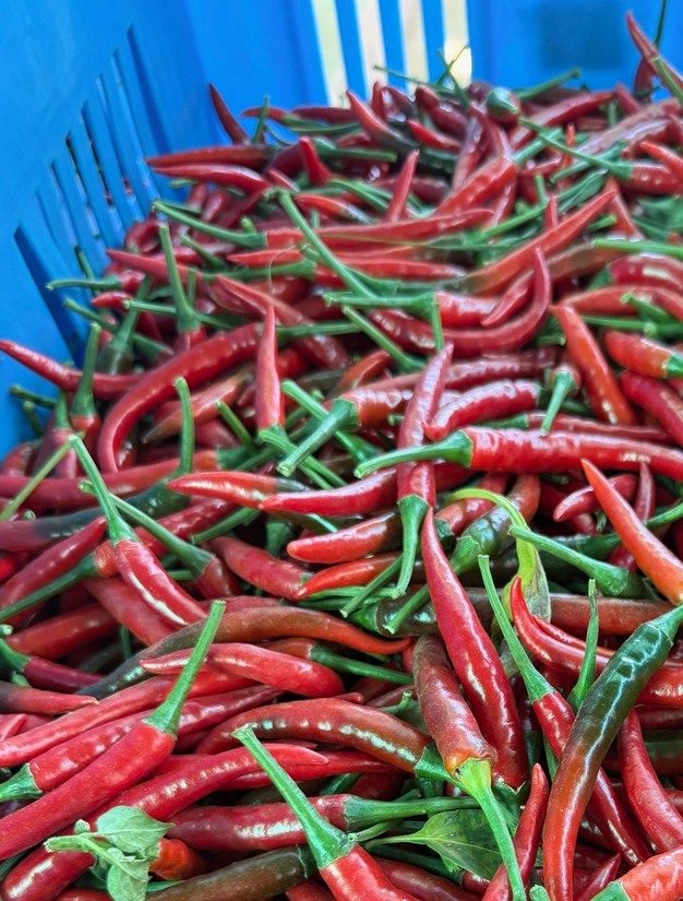 Este pequeño y picante cultivo tiene un gran potencial. Kinvest cultiva un híbrido tailandés que se cosecha en verde (más suave) o en rojo (más picante). Los chiles rojos se recogen al 70-75% de maduración y terminan de madurar durante el envío a Europa. Los de segunda calidad se secan y se exportan a fabricantes de especias en China, India o Sudáfrica. "Una ventaja del clima tropical y de altitud en Ruanda es que podemos cultivar casi todo el año", afirma Reg. "La consistencia entre temporadas es sorprendente".