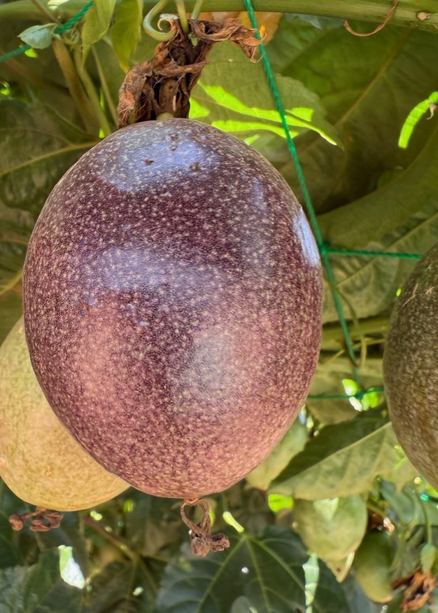 La joya de la corona es una variedad sudafricana de maracuyá de piel morada y pulpa amarilla, llamada Ester. Esta variedad ofrece rendimientos de hasta 20 toneladas por hectárea y puede cosecharse casi todo el año gracias al sistema de riego por goteo. "Obtiene resultados apenas nueve meses después de plantarse, por eso fue ideal para comenzar", dice Jesse.