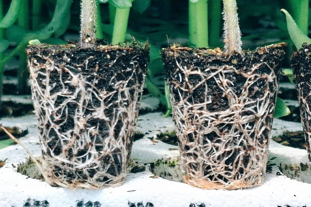 Un aspecto distintivo del enfoque de producción es el uso de micorrizas y bacterias seleccionadas de la rizosfera. El objetivo es favorecer un microbioma radicular activo que mejore la absorción de agua, la resistencia al estrés y la continuidad del crecimiento.