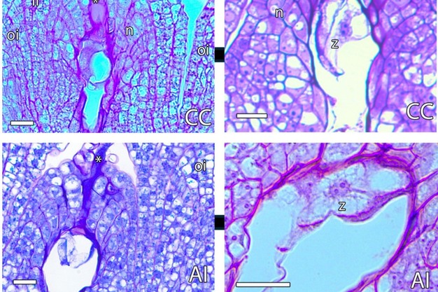 En flores autopolinizadas, la fertilización sí ocurre, pero el desarrollo del embrión se detiene antes de la primera división celular, mientras que el endospermo solo se desarrolla brevemente. Estas semillas detenidas desencadenan la abscisión de los frutos aproximadamente 20 días después de la polinización. En contraste, los embriones procedentes de polinización cruzada continúan su desarrollo con normalidad.
