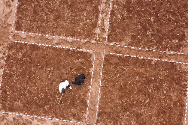 © NEVALAbonado de fondo hecho a mano en parcelas para el registro europeo de bioestimulantes.
