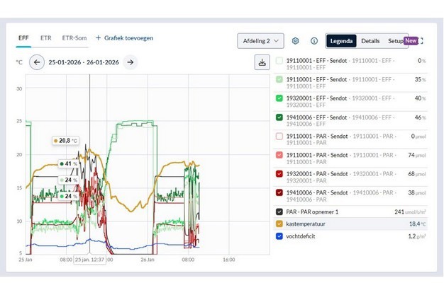 Gracias a un enlace a la API, los datos de los sensores se integran directamente en el ordenador climático Priva, por lo que todos los datos relevantes están disponibles en un solo lugar, lo que permite un mejor control de las condiciones climáticas y una mayor precisión en la gestión del cultivo.