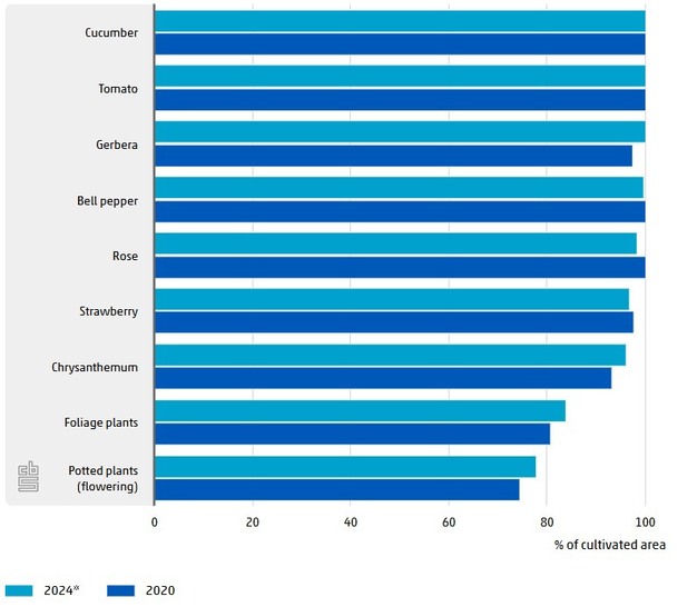 © Statistics NetherlandsUso de agentes de control biológico de plagas en cultivos de invernadero, por cultivo