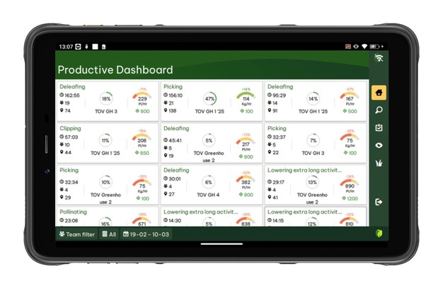 Ridder también ofrece una aplicación de gestión en Ridder Productive. Con ella, un gerente laboral puede monitorizar el rendimiento de los empleados.