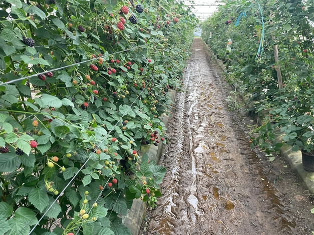"Con tanta agua en los túneles, es difícil mantener las condiciones climáticas deseadas. Las frambuesas crecen lentamente, mientras que las malas hierbas lo hacen más rápido. Estas frambuesas Malaika deberían haberse cosechado hace tres semanas".