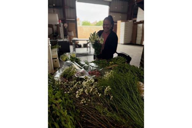Un miembro del equipo de Florabundance prepara el producto de San Valentín para su envío a floristerías retailer de todo Estados Unidos.