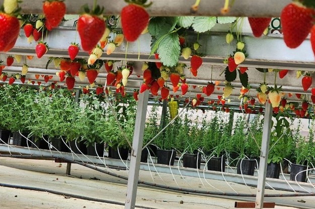 Según el equipo de ingenieros agrónomos, uno de los resultados más significativos de los ensayos en Claros Farm fue la colocación estratégica de plantas aromáticas bajo los canalones de los invernaderos y a lo largo de los bordes perimetrales.