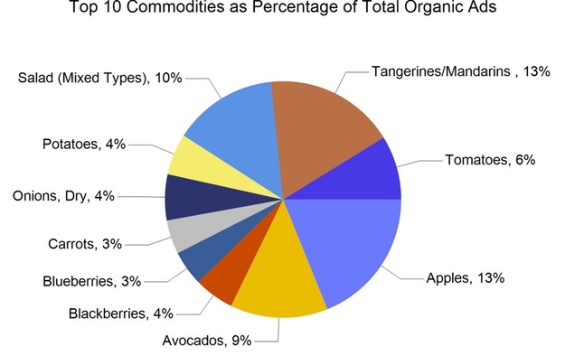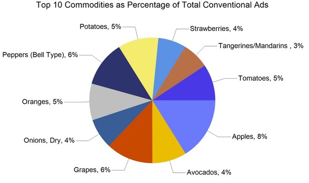 Por categorías de productos, la fruta concentró 168.496 anuncios (59% del total), seguida de cebollas y patatas con 26.202 (9%) y hortalizas con 90.711 (32%). También se registraron 1.343 anuncios de hierbas aromáticas, 1.474 de plantas ornamentales, 66 de cáñamo y 1.979 de miel. Los productos ecológicos sumaron 38.549 promociones, lo que representa el 13% del total.