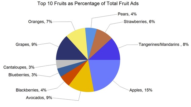 En cambio, las mayores bajadas se observaron en las bolsas de 4 libras de naranjas Navel (-27%), las frambuesas (-22%), los melones cantalupo (-14%) y las sandías mini sin semillas (-12%).