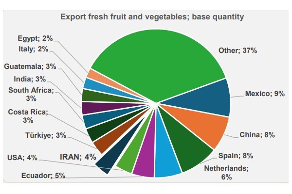 Los países del Golfo e Irán desempeñan un papel fundamental en el comercio de frutas y hortalizas frescas. Cada año, los países del Golfo importan más de 8 millones de toneladas de frutas y hortalizas frescas valoradas en más de 6.000 millones de dólares. Por su parte, Irán es sobre todo un país exportador y anualmente salen de allí unos 5,5 millones de toneladas de frutas y hortalizas frescas valoradas en más de 2.000 millones de dólares. Esto situó a Irán en el séptimo puesto en el ranking mundial de exportadores de frutas y hortalizas frescas en 2023, por delante de la vecina Turquía. Los principales mercados de Irán son Irak, Emiratos Árabes Unidos, Rusia, Afganistán, India, Pakistán, Omán y Qatar.