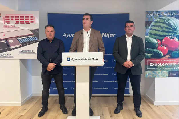 Iniciada la cuenta atrás para que la XVII edición de Expolevante-Níjar abra sus puertas al público —lo hará el 22 de abril en el centro de exposiciones y congresos de Campohermoso, donde será clausurada el día 24—, ya ha sido presentada oficialmente la feria agrícola de referencia en la provincia de Almería. Lo han hecho el alcalde nijareño, José Francisco Garrido, junto al concejal de Agricultura, Jesús Guerrero, y la delegación de la Asociación Expositora de Campohermoso, encabezada por José Francisco Torres.